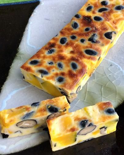 ふっくら煮えた黒豆とホクホクしたかぼちゃの組み合わせ。